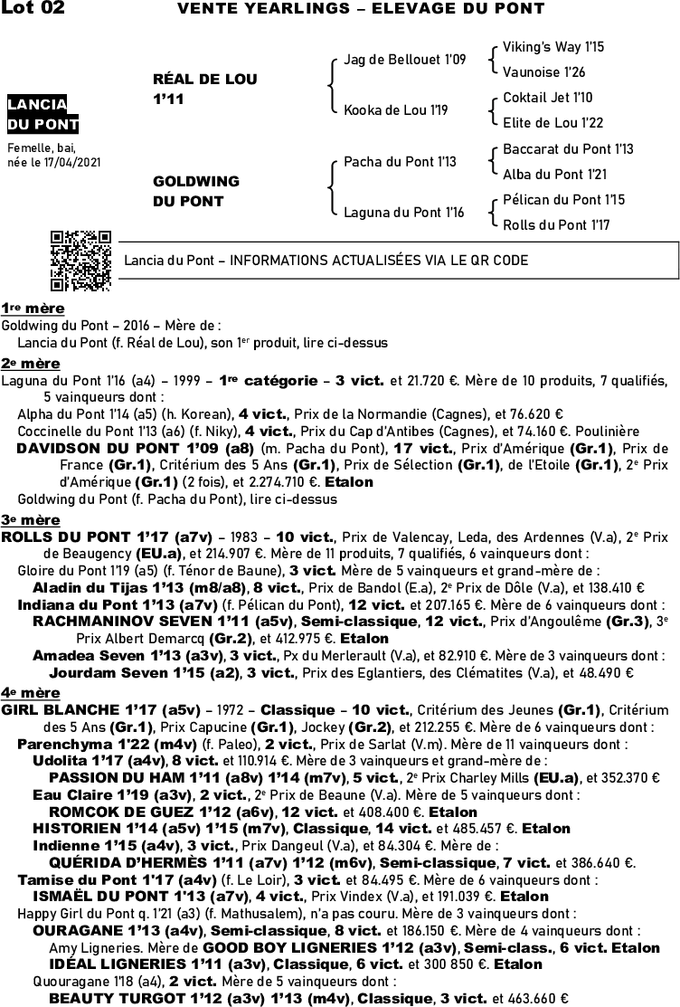 LANCIA DU PONT Yearling, F, TF Elevage Du Pont