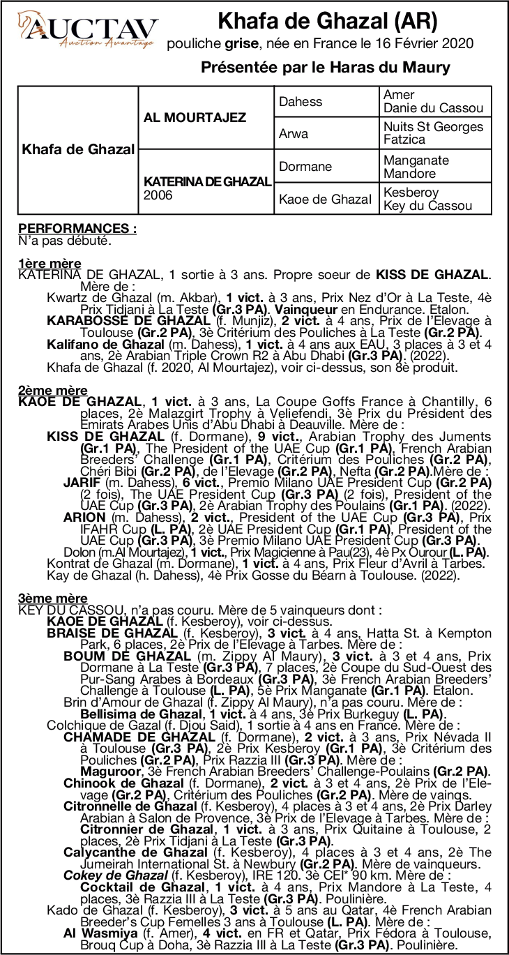 KHAFA DE GHAZAL 2 ans, F, PSA Haras Du Maury